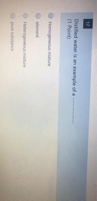 Solved 17 Distilled Water Is An Example Of A 1 Point Chegg Com