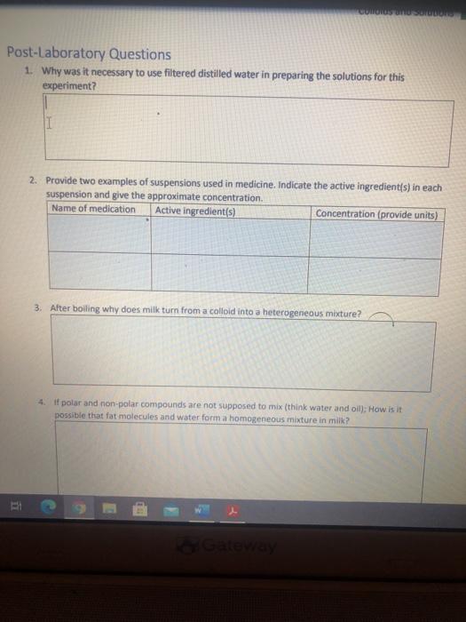 Solved Post Laboratory Questions 1 Why Was It Necessary To Chegg Com