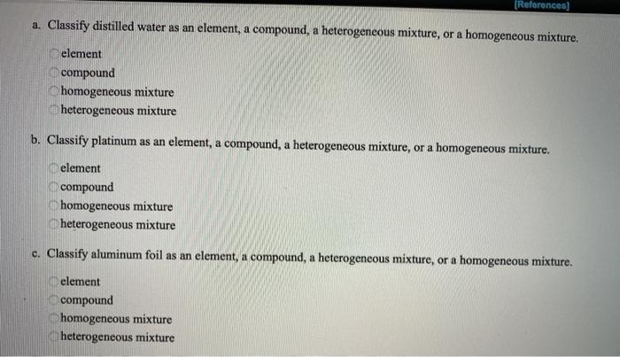 Solved References A Classify Distilled Water As An Chegg Com